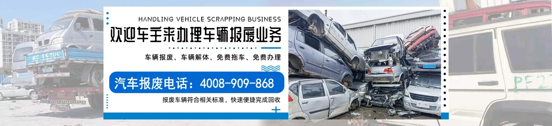 广东全境上门办理车辆报废,免费提供拖车服务。
